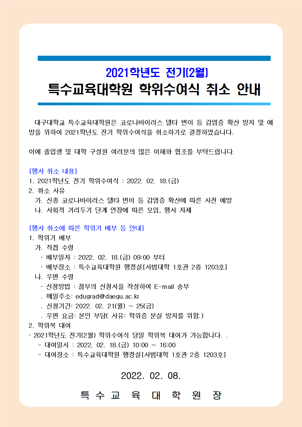 2022학년도 1학기 특수교육대학원 재학생 수강신청 기간 안내