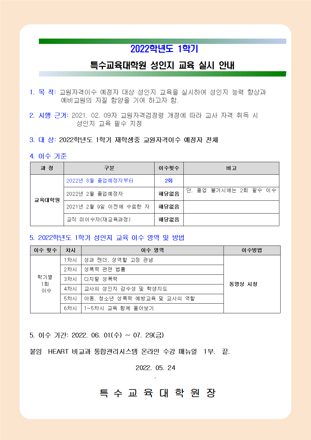2022학년도 1학기 특수교육대학원 코로나19 대응 상황별 수업 운영 안내