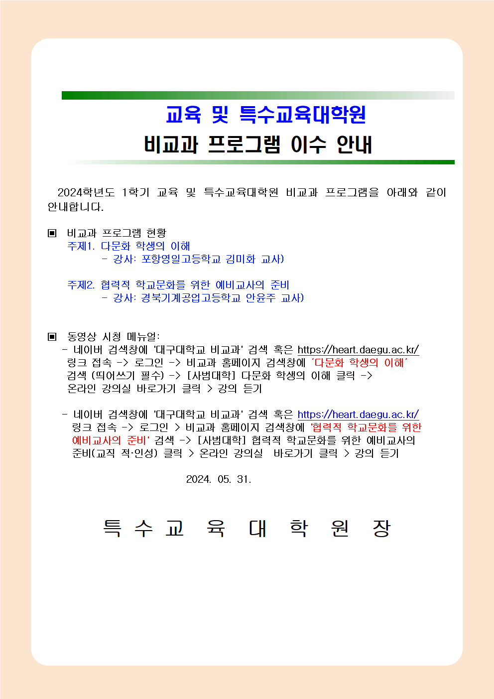 비교과 프로그램[다문화 학생이 의해/협력적 학교문화를 위한 예비교사의 준비]이수 안내