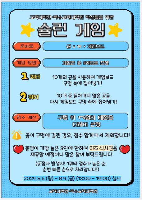 [비교과프로그램] 특수교육현장(통합교육) 슐런 게임 안내 및 1,2,3등 발표