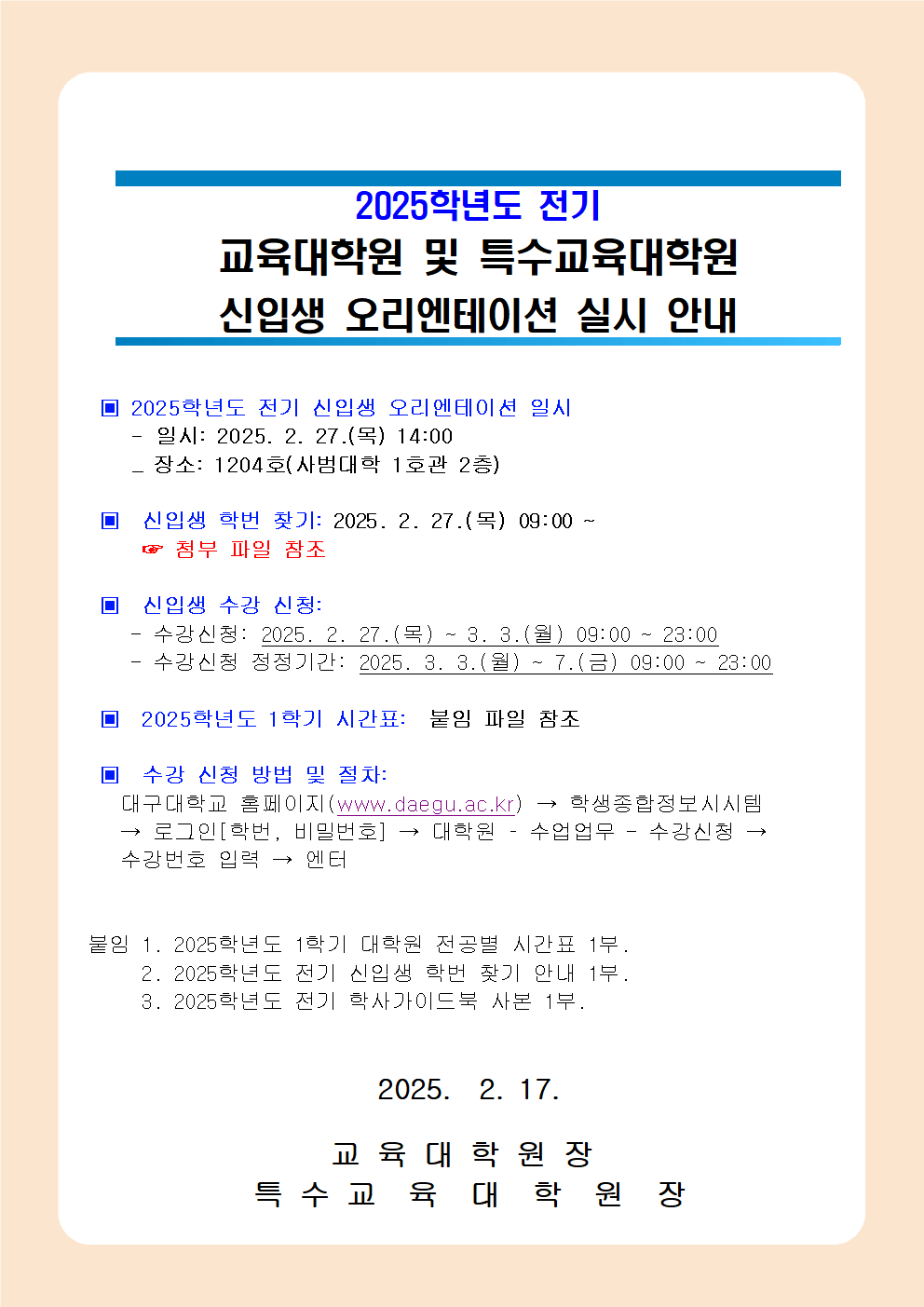 2025학년도 전기 신입생 오리엔테이션 실시 안내